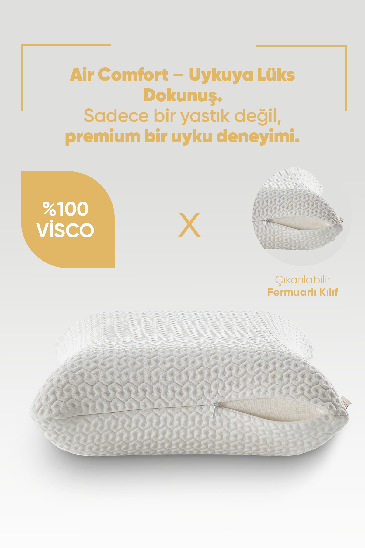 Başınızı koyar koymaz sizi eşsiz bir rahatlık hissiyle saran cilt dostu Air Comfort kumaşı ile tanışın. Esnek Lycra yapısı sayesinde her uyku pozisyonunda vücudunuzun şeklini alan bu Ortopedik Visko yastık, dolgun tasarımıyla boynunuzu mükemmel destekler. Anti-UV korumalı, nefes alabilen yüzeyi ile uykuya dalış sürenizi hızlandırın.