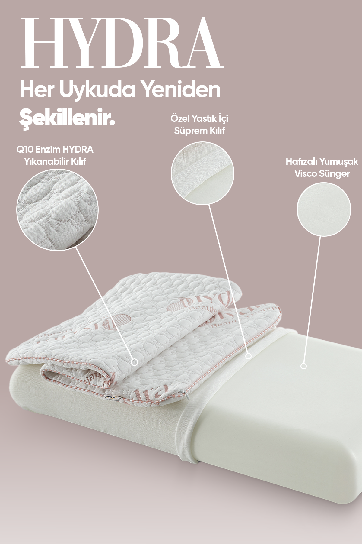 Pillow Market ortopedik visko yastık, doğru boyun desteği sağlayarak omurganızı düz bir hizada tutar ve uyku kaynaklı kas gerginliklerini çözer. Dış yüzeyindeki Hydra teknolojisi, hücresel rejenerasyon sürecini hızlandırarak geceyi sıradan bir dinlenme anından çıkarıp bir güzellik ritüeline dönüştürür. Sabahları ağrısız, enerjik ve ışıltılı uyanmanın farkını yaşayın!