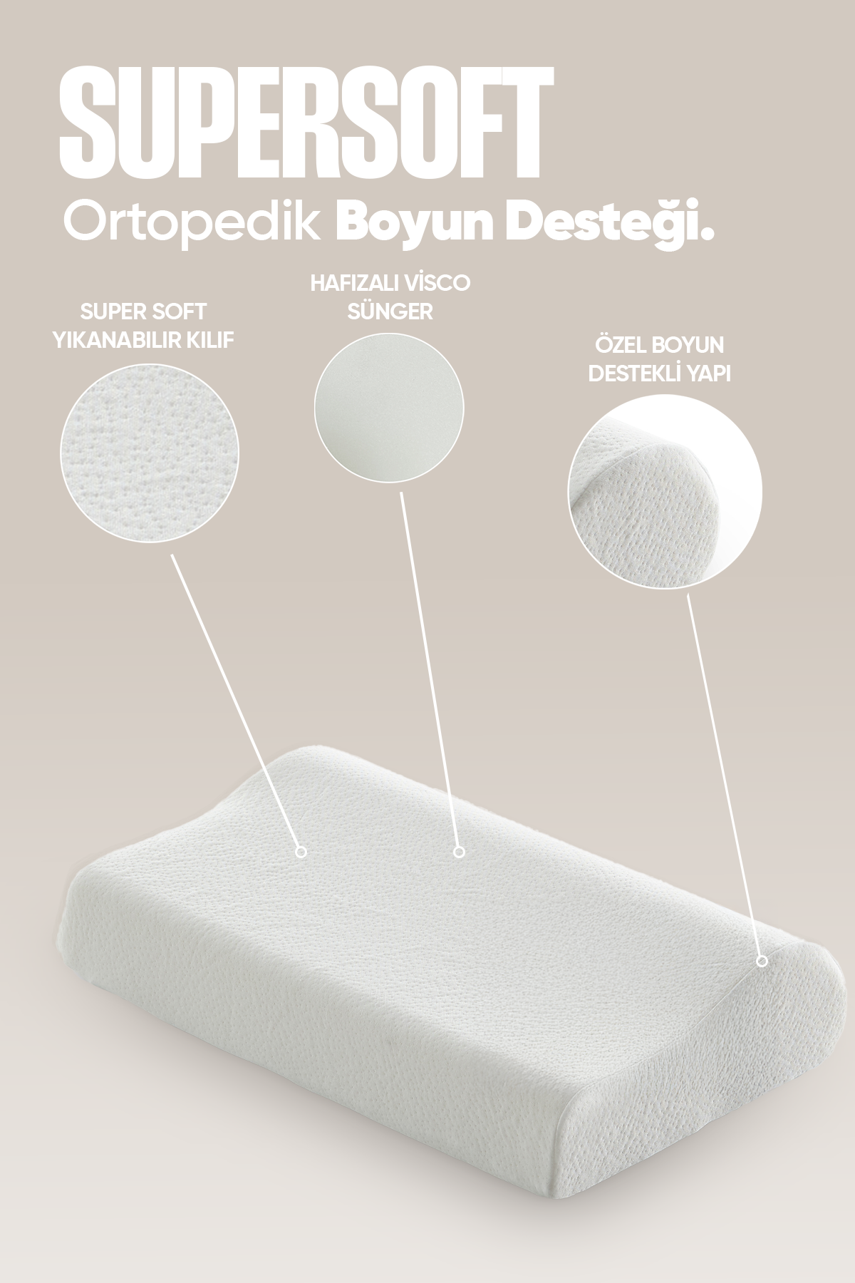 · Vücut Anatomisine Uygun Tasarım: Super Soft Yastık, vücut anatomisine uygun şekilde tasarlanmıştır, böylece baş ve boyun bölgesine ideal destek sağlar.