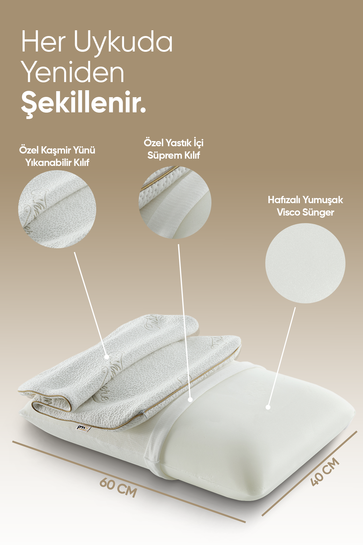 Özel Kaşmir Uyku Yastığı - Nefes alabilir ultra lüx kumaş - Ortopedik Visco Tombul Yastık Cashmere PM039-CASHMERE Özel Kaşmir Uyku Yastığı - Nefes alabilir ultra lüx kumaş - Ortopedik Visco Tombul Yastık Cashmere