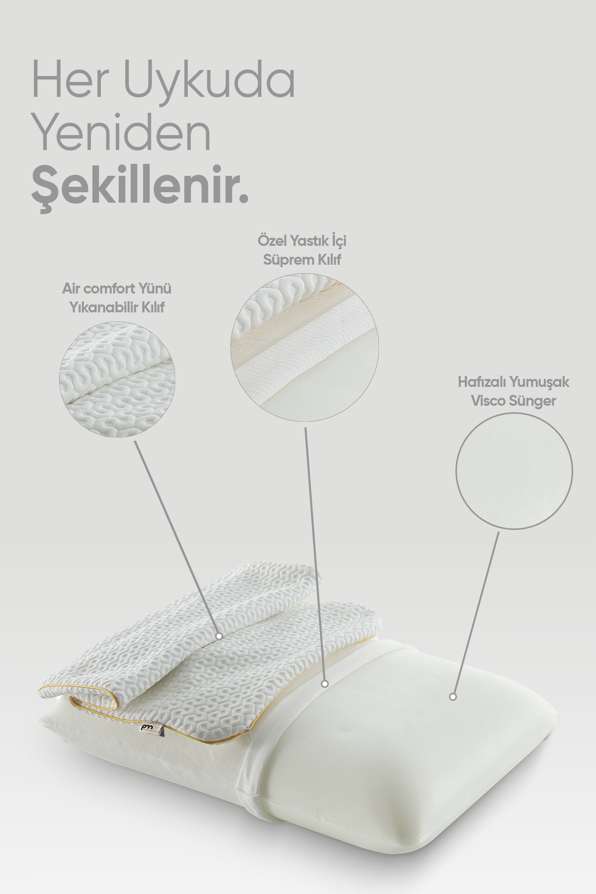 · Bulut Gibi Yumuşaklık: Air Comfort kumaşı, yastığa başınızı koyduğunuzda sizi adeta bulutların üzerinde hissettirir. Yumuşak tuşesi, baş ve boyun bölgesini nazikçe sararak rahatlatır.